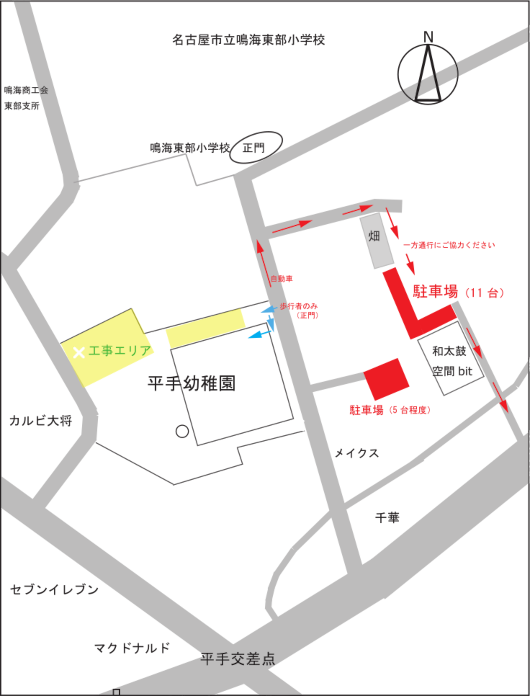 | 開催情報 | 令和6年度 入園説明会の開催について (ご案内) ■1号認定の入園を予定している方 日時:令和6年7月26日 (金) 10:00~11:00 令和6年9月6日 (金) 10:00~11:00 ■2号・3号認定認定の入園を予定している方 日時:令和6年9月20日 (金) 10:00~11:00 令和6年10月25日 (金) 10:00~11:00 会場:平手幼稚園 1階 遊戯室 申し込み方法:平手幼稚園(TEL.052-876-7854)までお電話でお申し込みください。 その他 ・保護者、未就園児の方は、上履きを持参してください。 ・駐車違反・マナー違反の指摘を受ける場合があります。徒歩、自転車または公共機関でご来園ください。 ・駐車場については下記案内図を参考に決められた駐車枠へ駐車をお願いします。 |